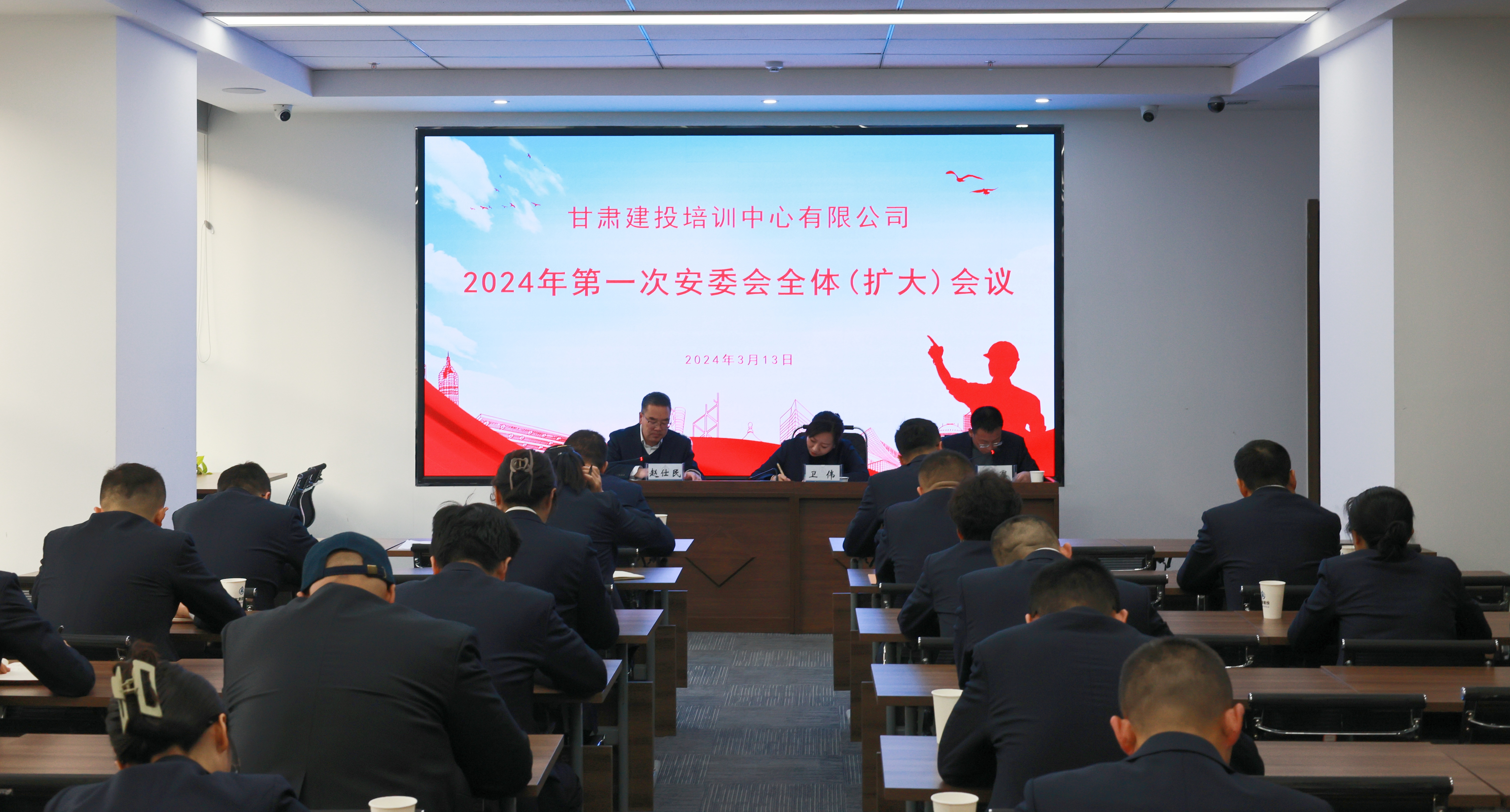 3月13日,甘肅建投培訓中心有限公司組織召開2024年第一次安委會(擴大)會議。培訓中心總經理、安委會主任衛偉,副總經理王軍出席會議,各相關部室、子公司負責人及全體員工參加會議。會議由培訓中心副總經理、安委會副主任趙仕民主持。