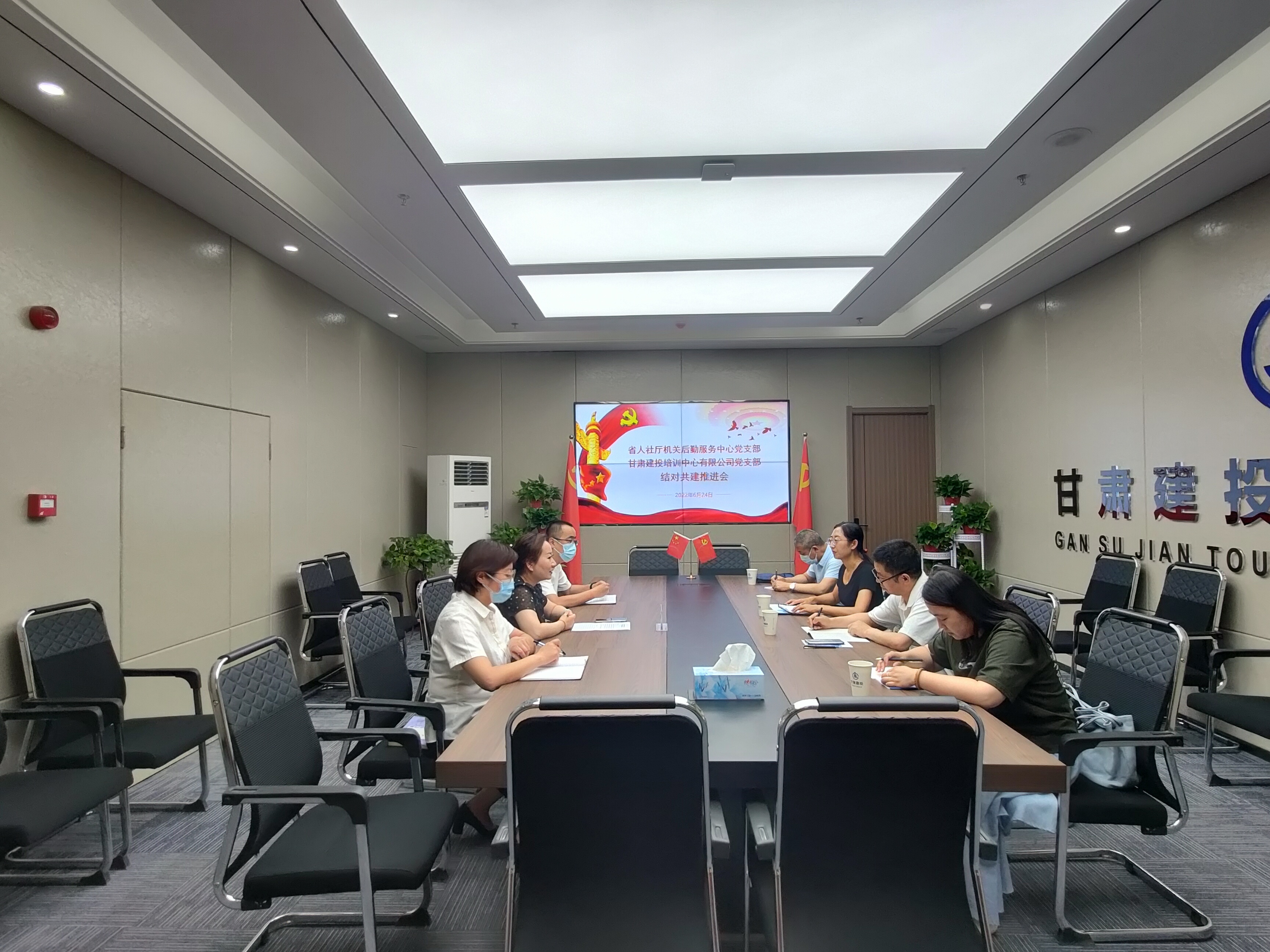 6月24日,甘肅建投培訓(xùn)中心有限公司黨支部與省人社廳機(jī)關(guān)后勤服務(wù)中心黨支部召開(kāi)支部結(jié)對(duì)共建推進(jìn)會(huì)。 會(huì)上,甘肅建投培訓(xùn)中心有限公司黨支部書(shū)記、總經(jīng)理衛(wèi)偉對(duì)省人社廳機(jī)關(guān)后勤服務(wù)中心黨支部的到來(lái)表示熱烈歡迎,并詳細(xì)介紹了公司基本概況、支部建設(shè)情況、主題黨日活動(dòng)及黨建活動(dòng)情況等,雙方就今后支部結(jié)對(duì)共建事宜進(jìn)行了探討。